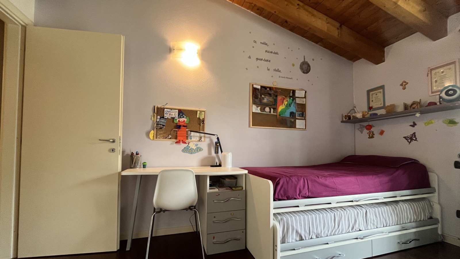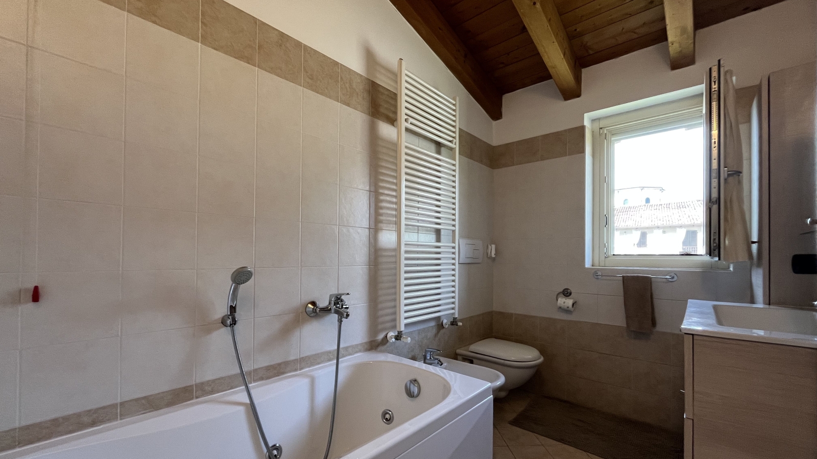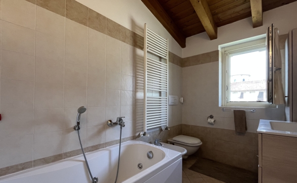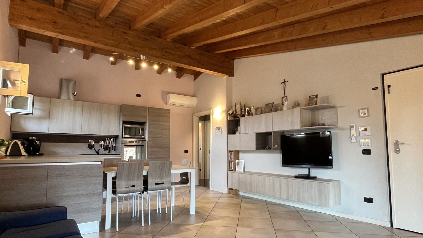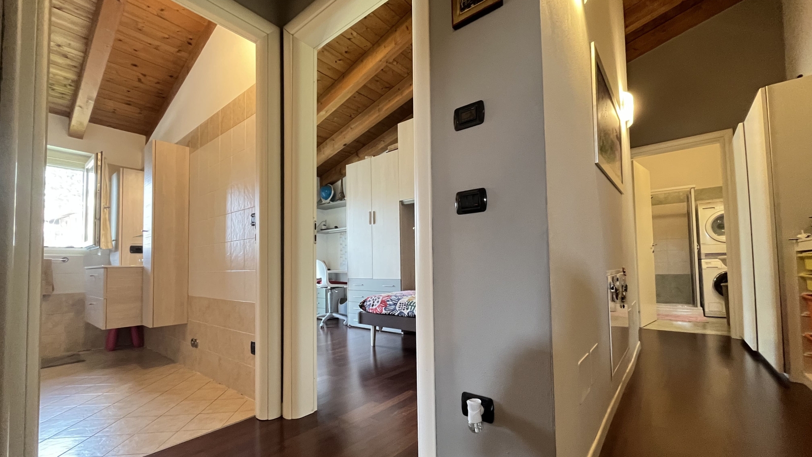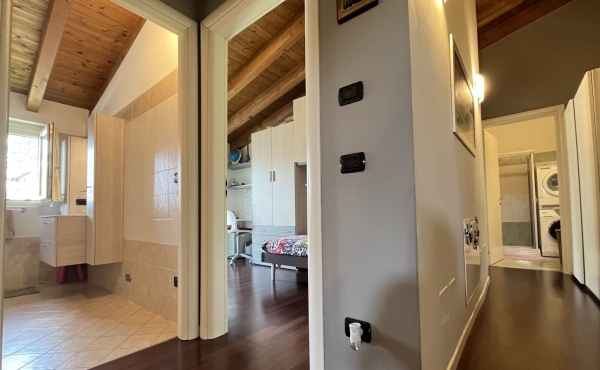 L'appartamento è in ottime condizioni, pari al nuovo, e offre comfort moderni come l'impianto d'aria condizionata in soggiorno e in ogni camera da letto, oltre a un sistema di antifurto per la massima sicurezza e al videocitofono. Le travi in legno a vista aggiungono un tocco di calore e charme all'ambiente. Non mancano utili accessori, una cantina al piano interrato e una spaziosa autorimessa doppia, perfetta per chi cerca praticità. Situato a pochi passi da tutti i principali servizi, questo appartamento è ideale anche per persone con mobilità ridotta, grazie all'accesso adattato e all'ascensore.