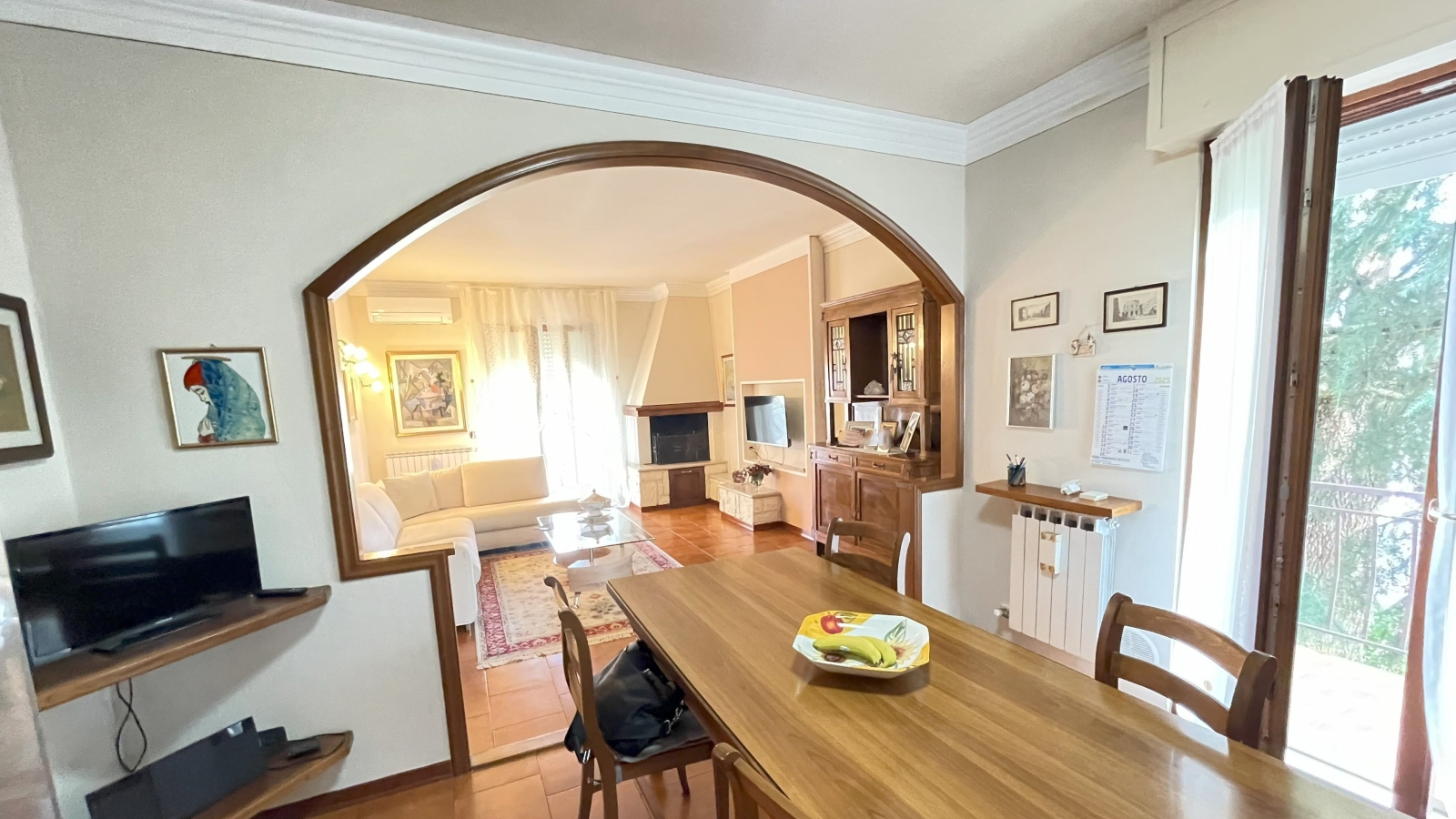 Il soggiorno è un vero gioiello, caratterizzato da un camino che aggiunge calore e charme, perfetto per le serate in famiglia. La cucina abitabile, con l'arco a vista sul soggiorno, è ideale per chi ama cucinare e intrattenere. Il comodo disimpegno conduce alle tre camere da letto spaziose, perfette per ospitare tutta la famiglia, e al bagno che è stato recentemente ristrutturato con materiali di buona qualità.