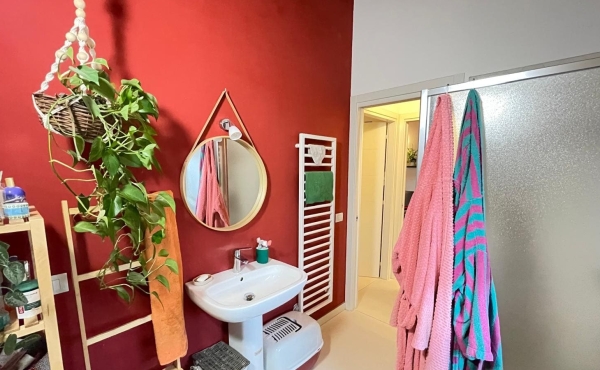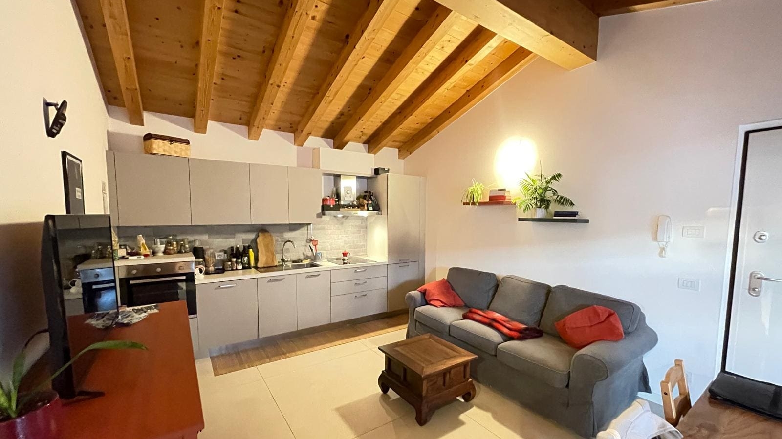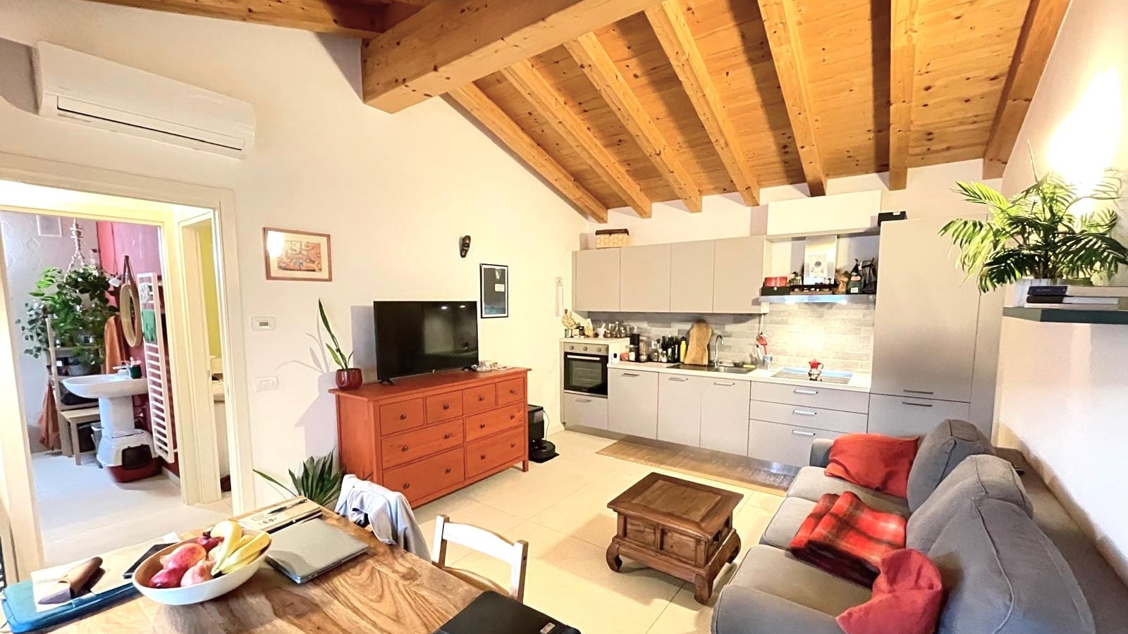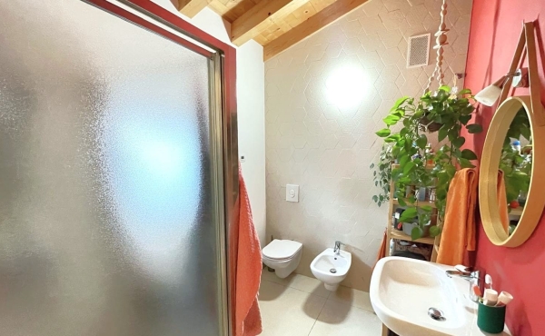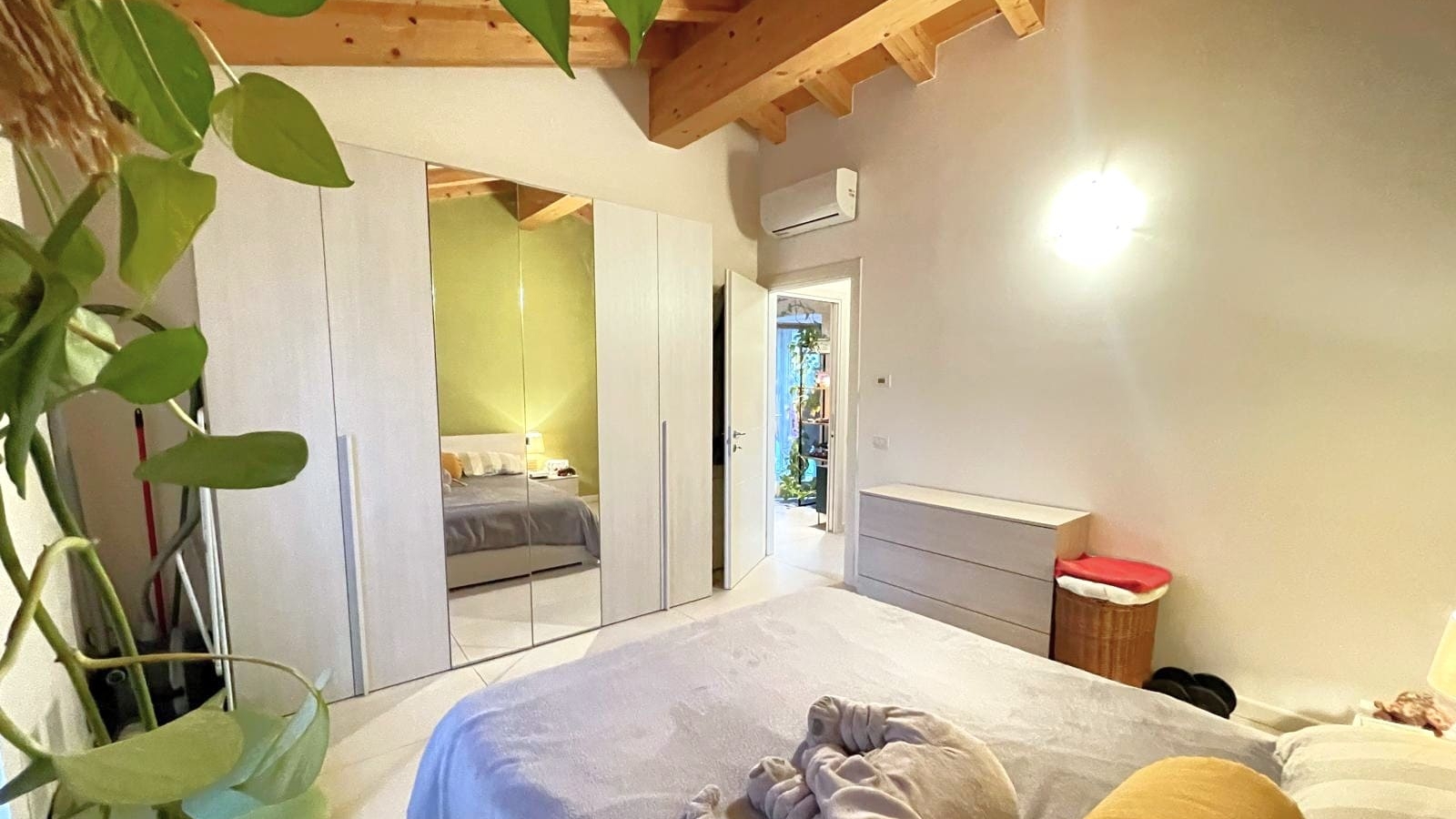 La camera matrimoniale è spaziosa e accogliente, mentre il bagno moderno e funzionale soddisfa ogni esigenza.Tra le caratteristiche di questo immobile, spiccano le travi a vista, il riscaldamento a pavimento e la ventilazione meccanica forzata, che garantiscono un comfort ottimale in ogni stagione. Inoltre, un disimpegno con attacco per la lavatrice offre ulteriore spazio per riporre i tuoi effetti personali.