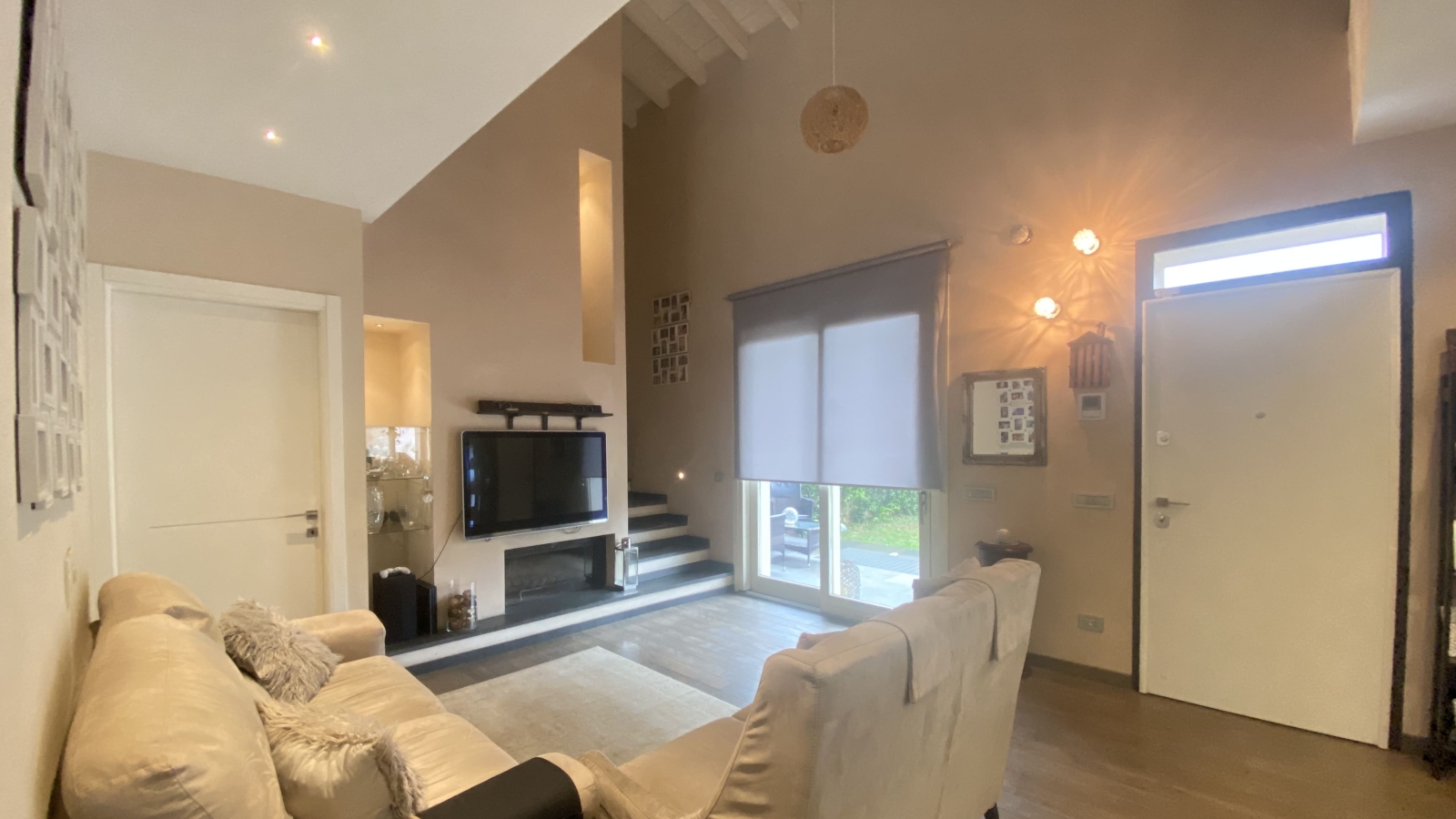 Dal portico d'ingresso si accede alla zona living composta da un soggiorno, impreziosito da un camino accogliente, e da una cucina abitabile a vista con penisola, perfetta per momenti conviviali. Le ampie vetrate inondano di luce naturale gli spazi, rendendo l'ambiente luminoso e invitante. Questa residenza offre quattro spaziose camere da letto di cui due al piano terra con bagno con doccia e due al piano primo con bagno con vasca e cabina armadio.