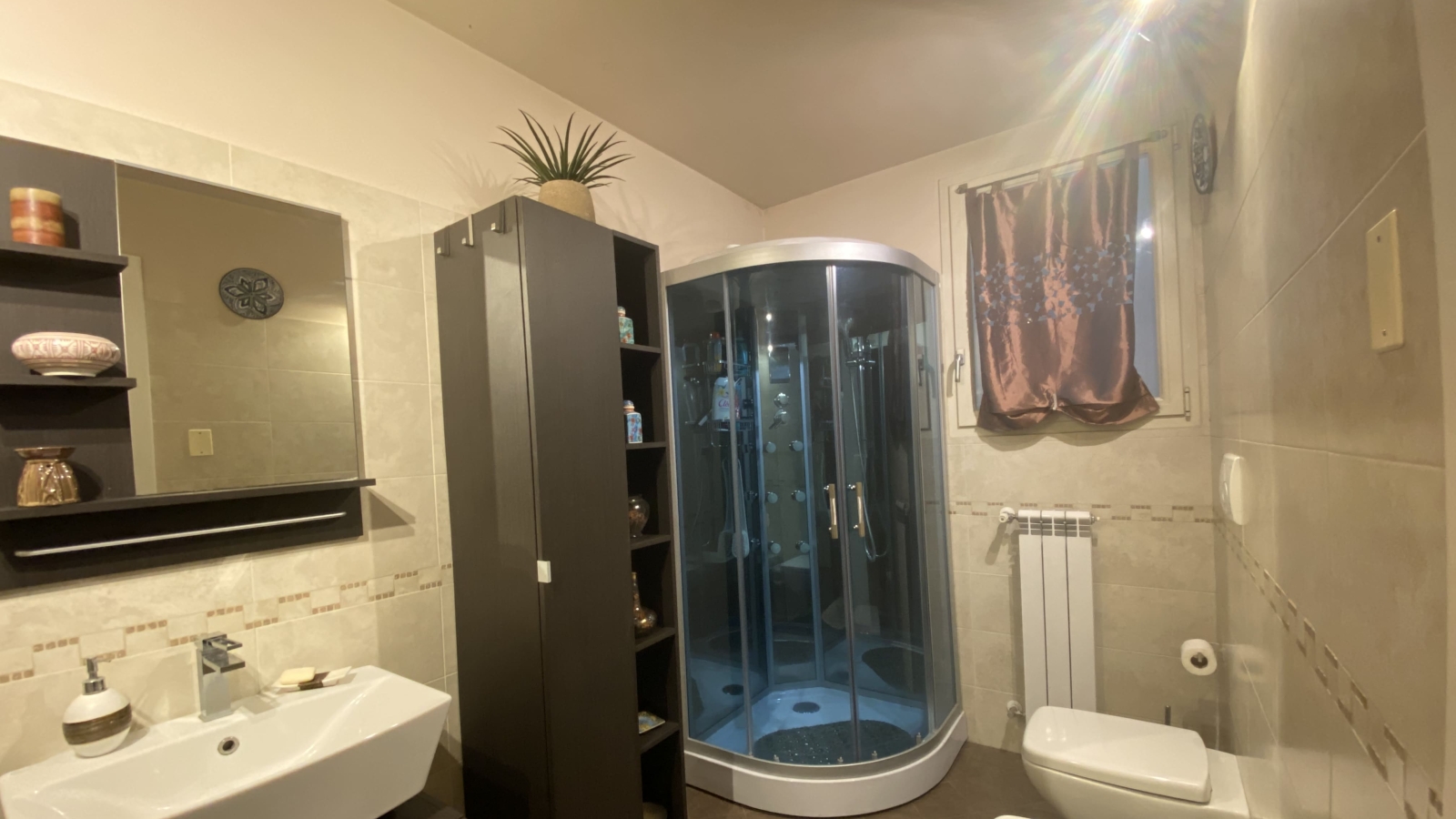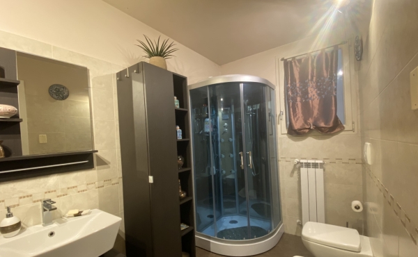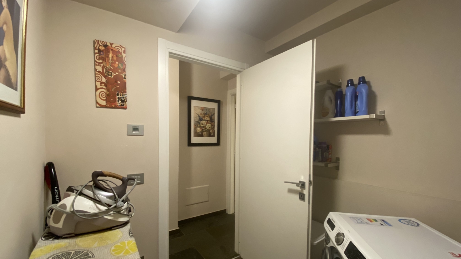 Al piano interrato completano la proprietà un terzo bagno con doccia, un locale tecnico, una lavanderia con stireria, una cantina ideale per riporre i vini oltre a un'autorimessa ampia con basculante sezionale elettrica per due autovetture famigliari.Il riscaldamento e raffrescamento a pavimento, insieme all'impianto di deumidificazione canalizzato, garantiscono comfort in ogni stagione.